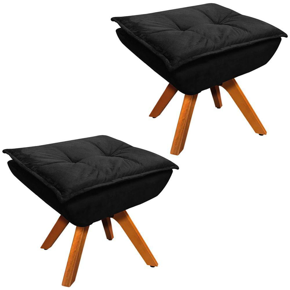 Kit 2 Puff'S Base Giratória Em Madeira Charger Suede Preto