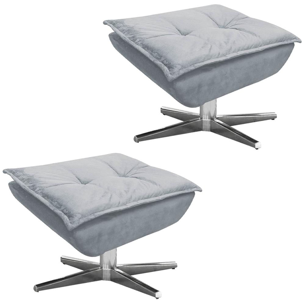 Kit 2 Puff's Decorativos Base Giratória Cromada Charger Suede Cinza - Gran Belo
