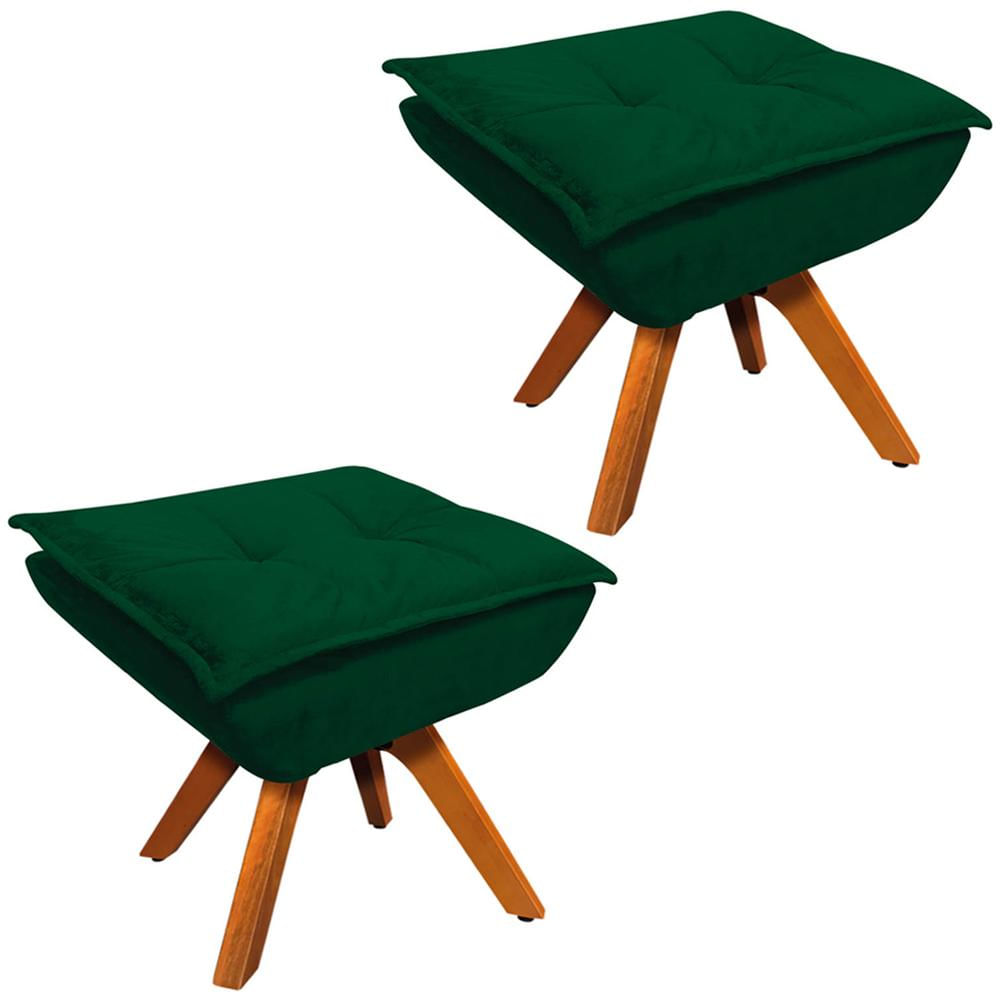 Kit 2 Puff's Decorativos Base Giratória em Madeira Charger Suede Verde - Gran Belo