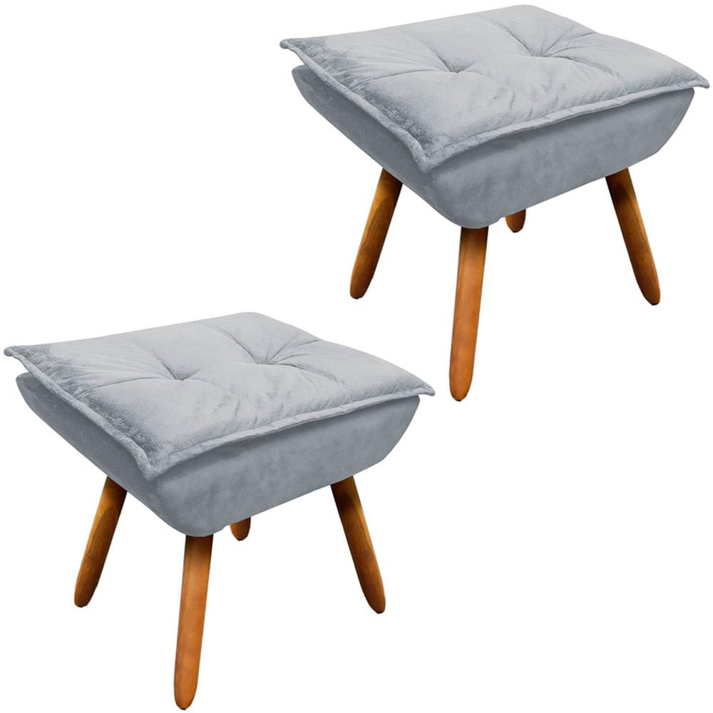 Características do Produto: Material da Estrutura: Madeira de Eucalipto Reflorestamento Assento: Espuma D-23 Encosto: Espuma D-23 Material dos Pés: Pés Palito em Madeira Revestimento: Suede Peso Suportado: 120kg Conteúdo da Embalagem: 2 Puffs Necessita de Montagem: Somente dos pés Instruções/Cuidado: Evitar exposição ao sol, para que o produto não sofra alterações na cor do tecido. Não limpar com escovas ou produtos abrasivos. Observações Importantes: - As imagens são meramente ilustrativas e não acompanham objetos de decoração e eletros. - Pode haver alguma diferença de tonalidade entre a imagem e o produto, por conta do tratamento de imagens e a calibração de cores da sua tela. - Todos os nossos produtos são enviados devidamente embalados e com total segurança. - Confira as dimensões do produto no momento da compra e certifique-se de que passará normalmente por elevadores, portas, escadas e/ou corredores, evitando assim futuros desagrados ou imprevistos com a entrega do produto.