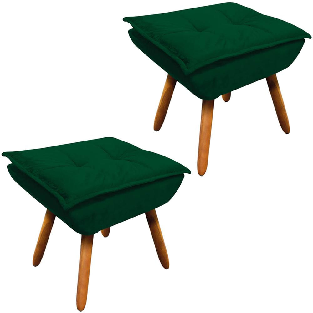 Kit 2 Puff's Decorativos Pés Palito Charger Suede Verde - Gran Belo