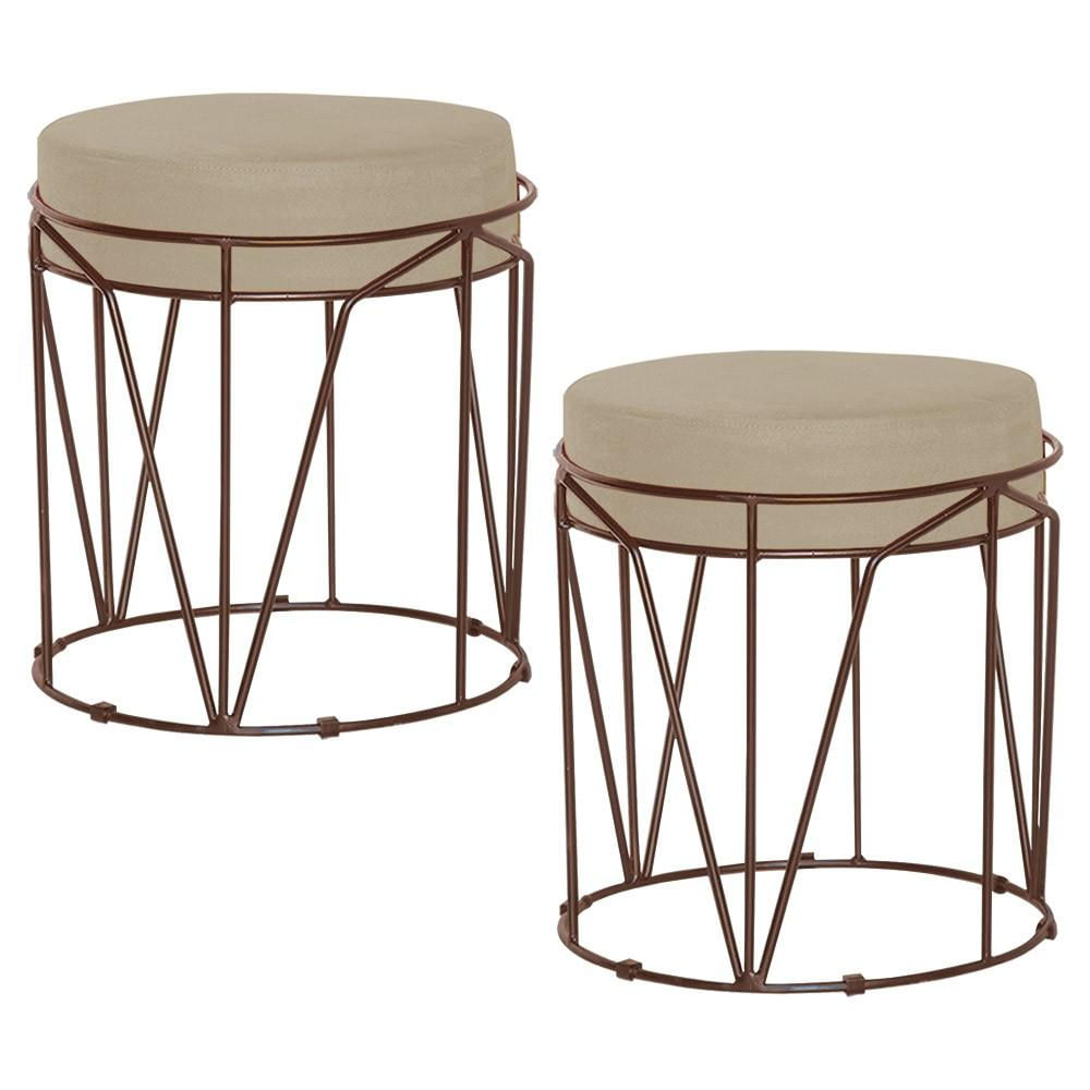 Kit 2 Puffs Decorativo Sala de Estar Base Bronze Chloe Veludo Bege - Gran Belo