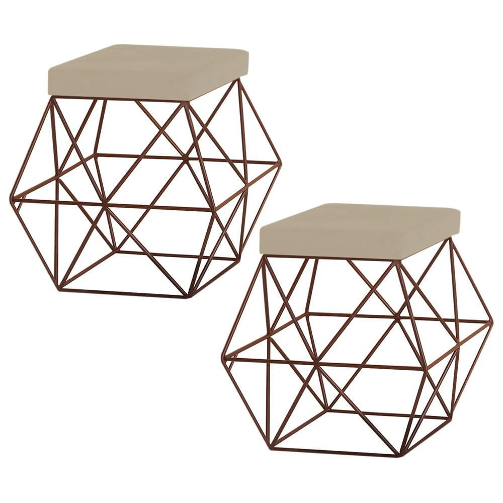 Kit 2 Puffs Decorativo Sala de Estar Base Bronze Trixie Veludo Bege - Gran Belo