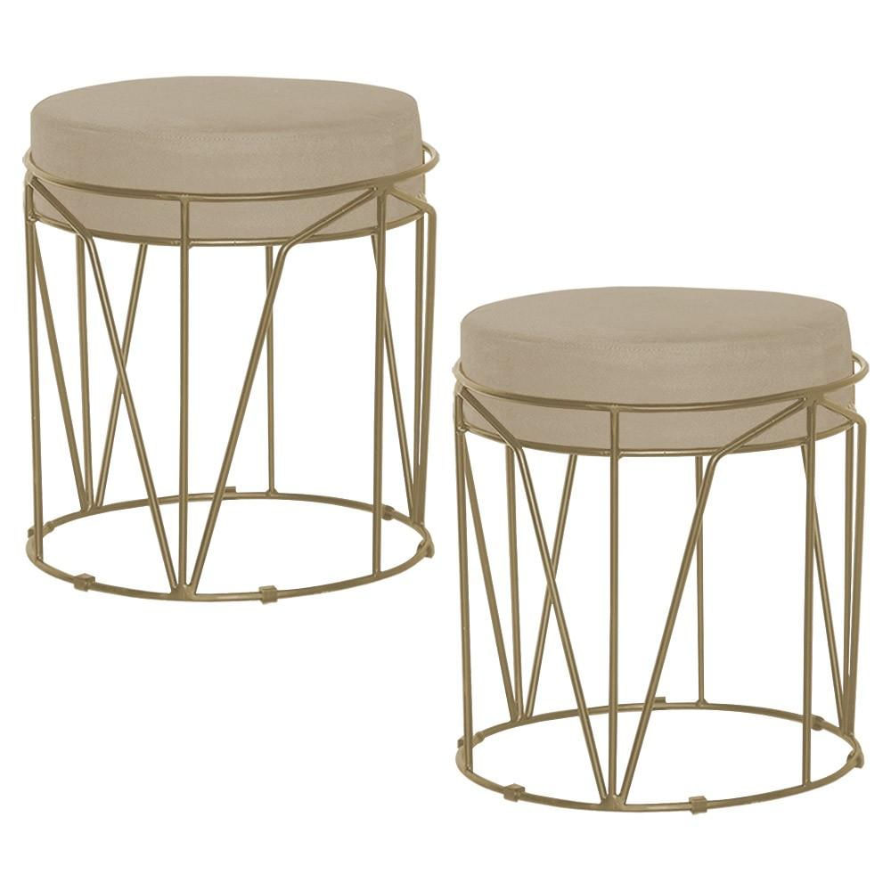 Kit 2 Puffs Decorativo Sala de Estar Base Gold Chloe Veludo Bege - Gran Belo