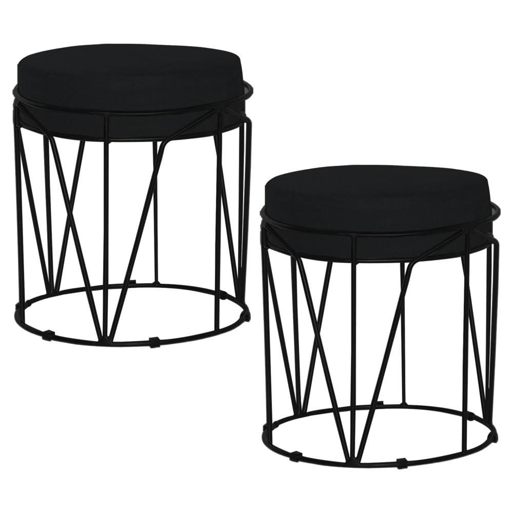 Kit 2 Puffs Decorativo Sala de Estar Base Preto Chloe Veludo Preto - Gran Belo
