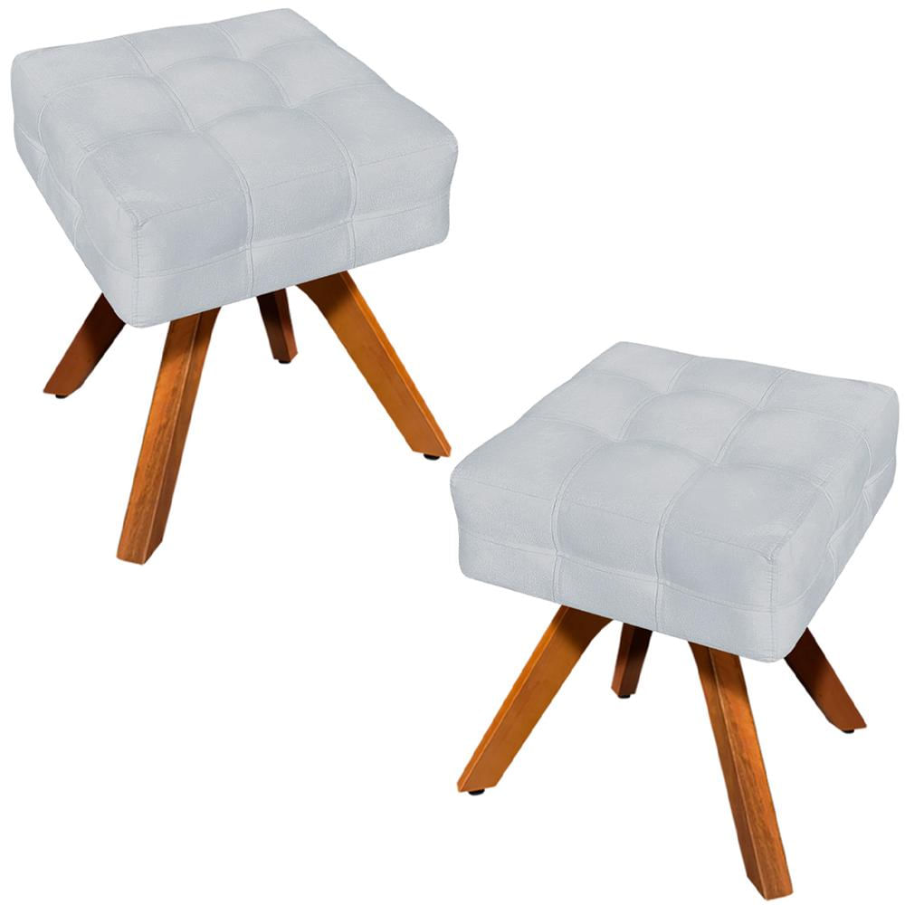 Características do Produto: Material da Estrutura: Madeira de Eucalipto Reflorestamento Assento: Espuma D-23 Encosto: Espuma D-23 Material dos Pés: Base giratória em madeira Revestimento: Suede Peso Suportado: 120kg Cada Conteúdo da Embalagem: 2 Puffs Necessita de Montagem: Somente dos pés Instruções/Cuidado: Evitar exposição ao sol, para que o produto não sofra alterações na cor do tecido. Não limpar com escovas ou produtos abrasivos. Observações Importantes: - As imagens são meramente ilustrativas e não acompanham objetos de decoração e eletros. - Pode haver alguma diferença de tonalidade entre a imagem e o produto, por conta do tratamento de imagens e a calibração de cores da sua tela. - Todos os nossos produtos são enviados devidamente embalados e com total segurança. - Confira as dimensões do produto no momento da compra e certifique-se de que passará normalmente por elevadores, portas, escadas e/ou corredores, evitando assim futuros desagrados ou imprevistos com a entrega do produto.