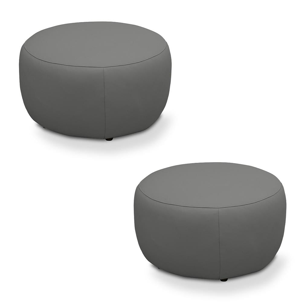 Kit 2 Puffs Decorativos Mariele Sala de Estar Pés em Madeira Couro Grafite G88 - Gran Belo
