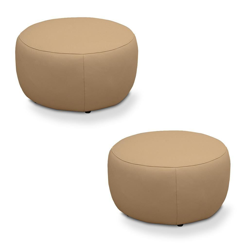Kit 2 Puffs Decorativos Mariele Sala De Estar Pés Em Madeira Couro Nude G88 - Gran Belo