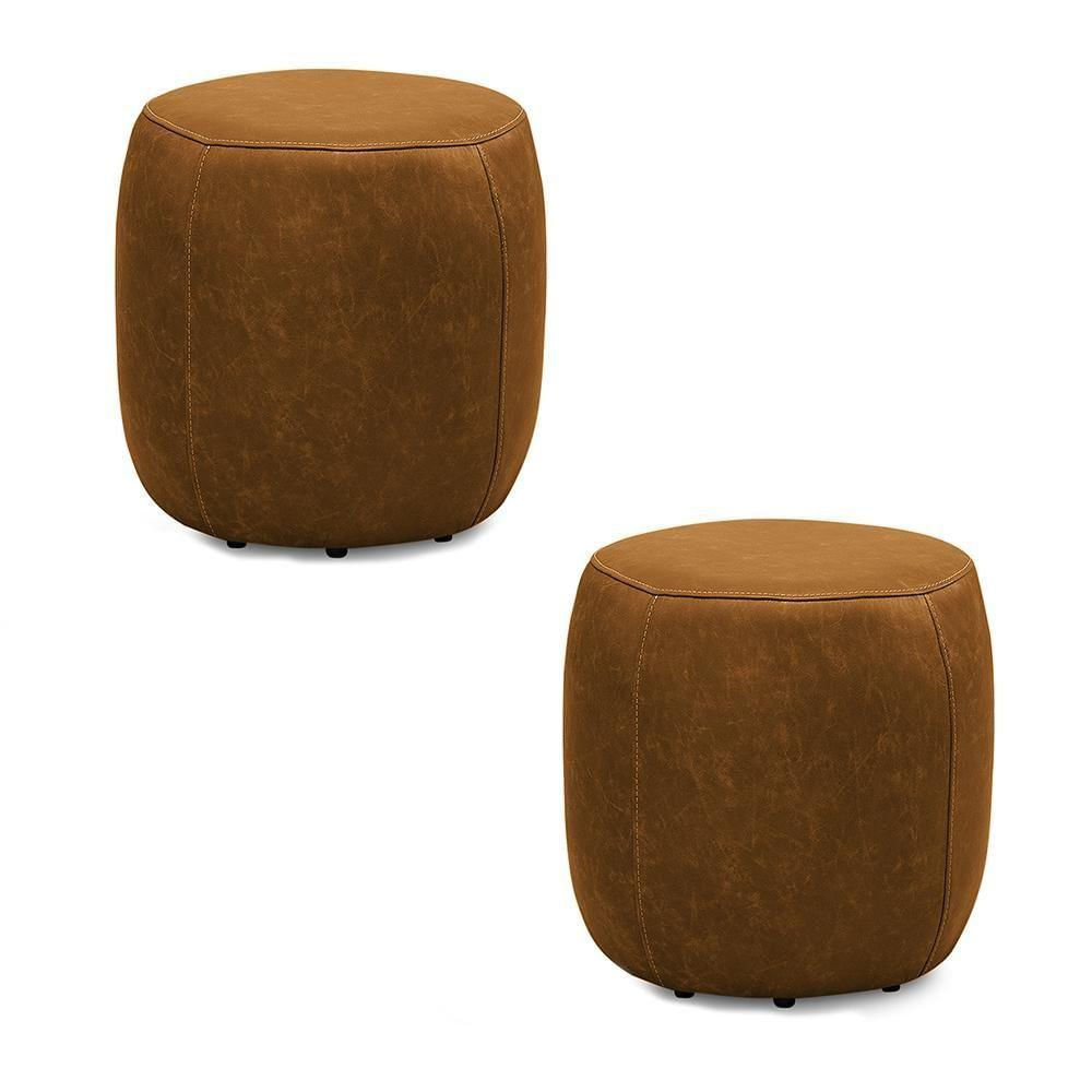 Kit 2 Puffs Decorativos Yuri Sala De Estar Couro Caramelo Manchado G88 - Gran Belo