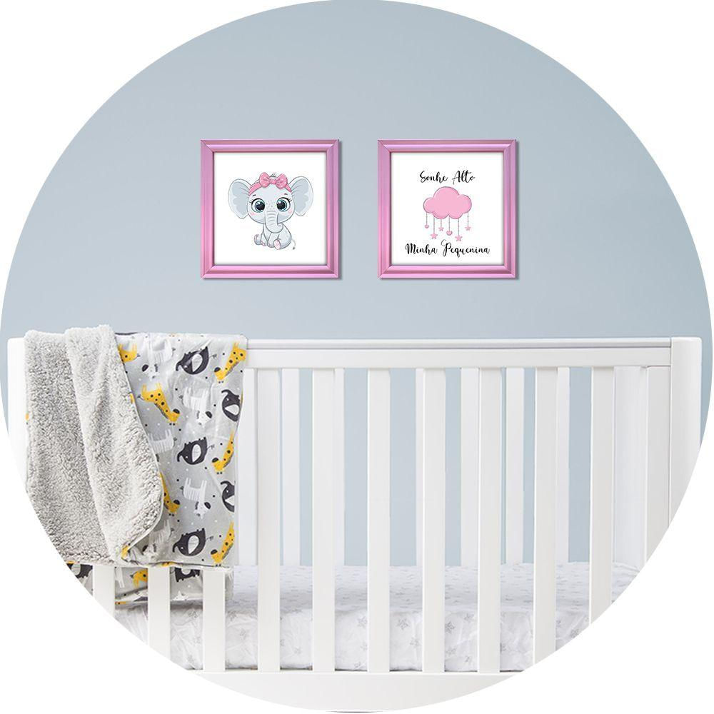 Kit 2 Quadro Decorativo Infantil Quarto Bebê Menina E Menino Titulos Elefanta Menina Moldura 2