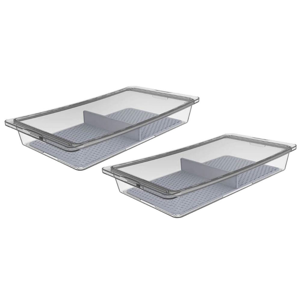 Kit 2 Travessas Plásticas Retangulares Tampa Hermética 3,4L Transparente com Divisória Crippa