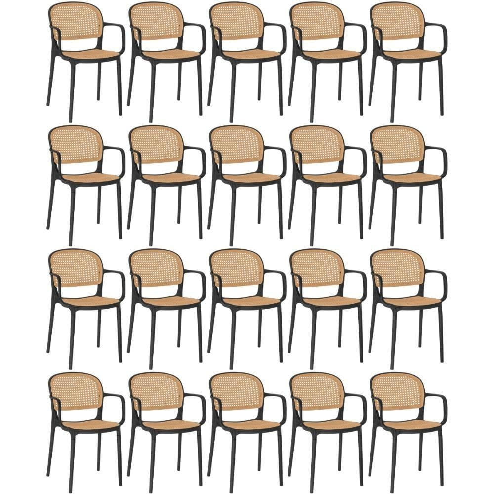Kit 20 Cadeiras De Jantar Roma Prática Com Braços Para Sala E Cozinha - Preto