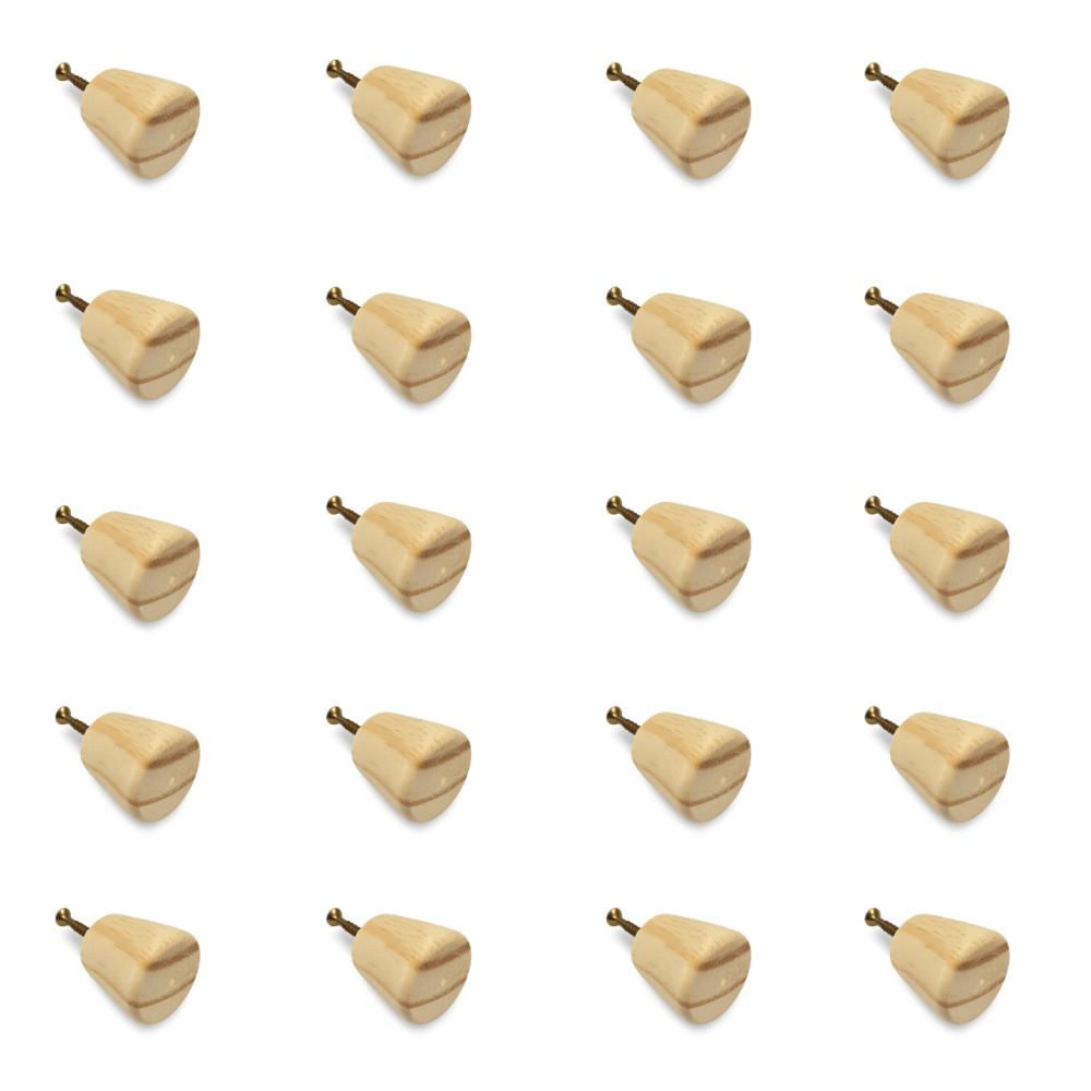Kit 20 Puxadores de Madeira Redondos Para Móveis Gavetas Armários Modelo Cone