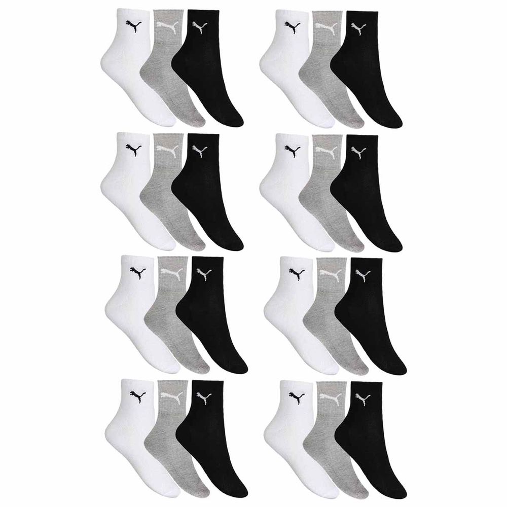 Kit 24 Pares de Meia Puma Esportiva Cano Médio Masculino - Mescla 39-43 / Branco e Preto