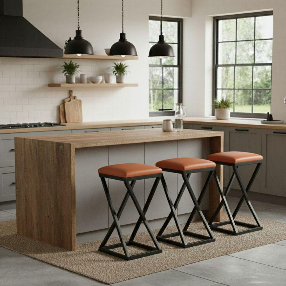 Kit 3 Banco Banqueta 80 Cm Alta Bancada Gourmet Bistrô Corino Caramelo