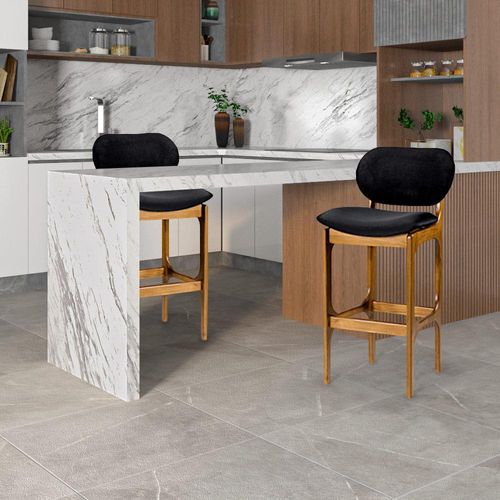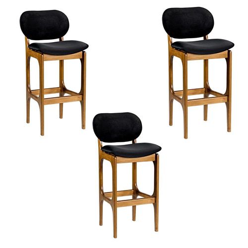 Kit 3 Banquetas Alta Madeira Maciça Soshoku Suede Preto/Imbuia - Gran Belo
