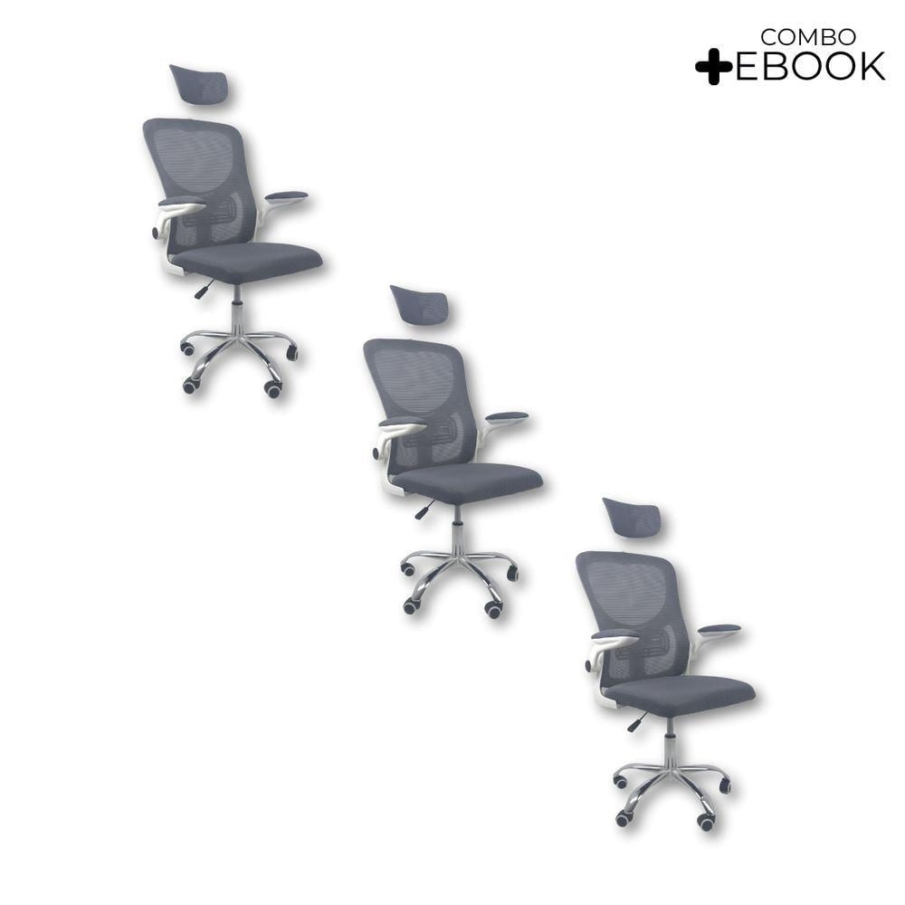 Kit 3 Cadeiras De Escritório Diretor Oficial Vegas Com Apoio Cinza E Branco