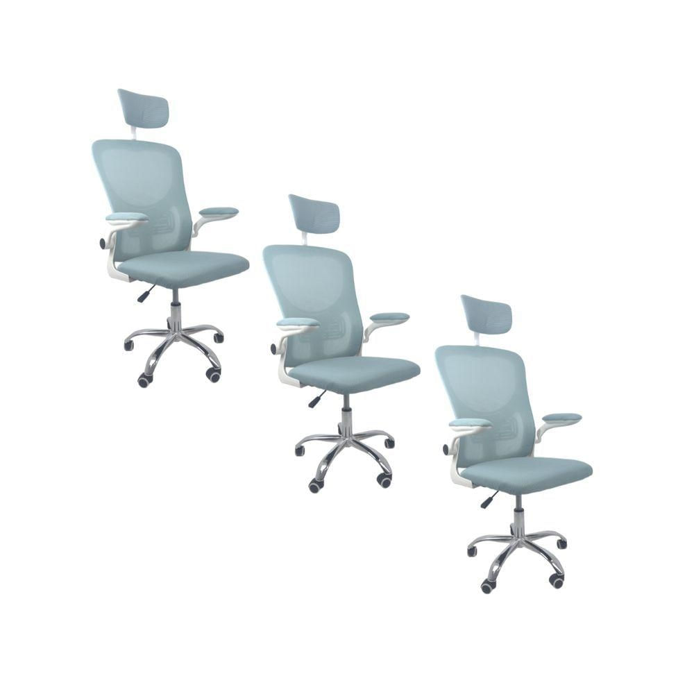 Kit 3 Cadeiras De Escritório Oficial Vegas Azul Branco