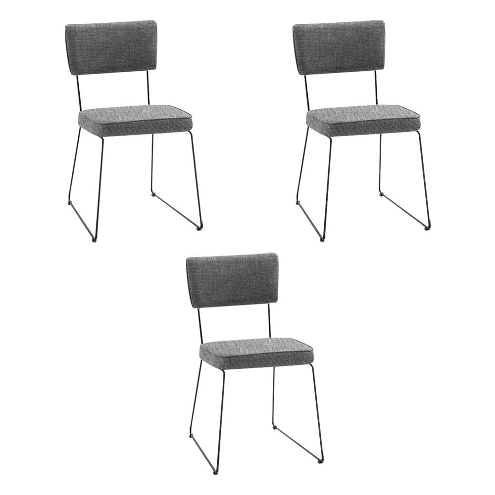 Kit 3 Cadeiras de Jantar Decorativa Base Aço Preto Luigi Linho Cinza - Gran Belo