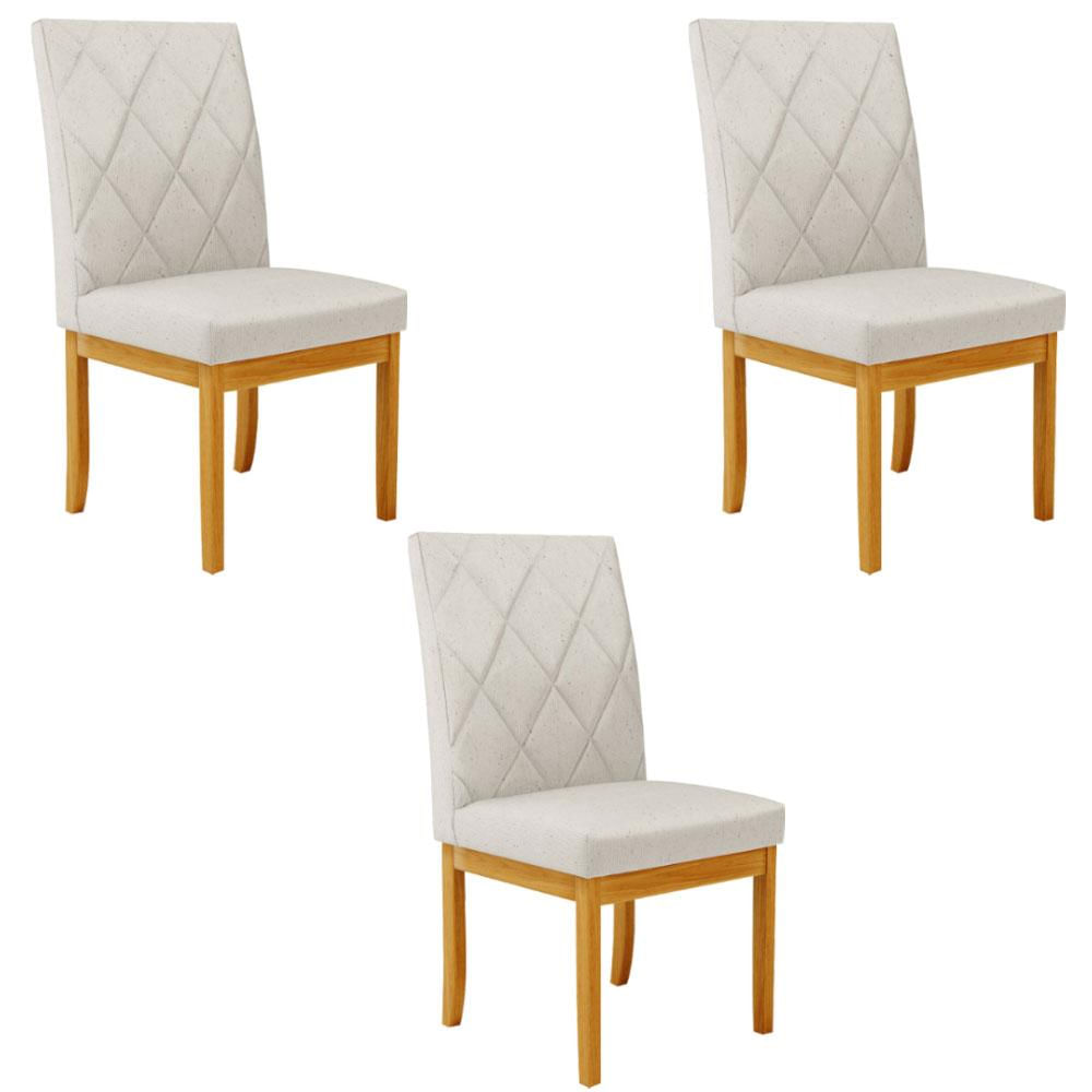 Kit 3 Cadeiras de Sala de Jantar Estofadas Gomes Madeira Maciça Linho Off White G78 - Gran Belo