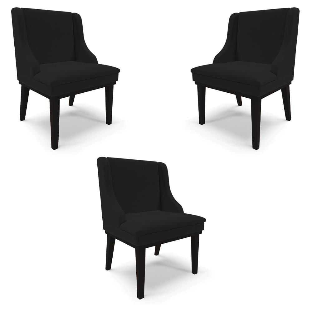 Kit 3 Cadeiras Decorativas Sala de Jantar Base Fixa de Madeira Firenze Linho Preto G19 - Gran Belo