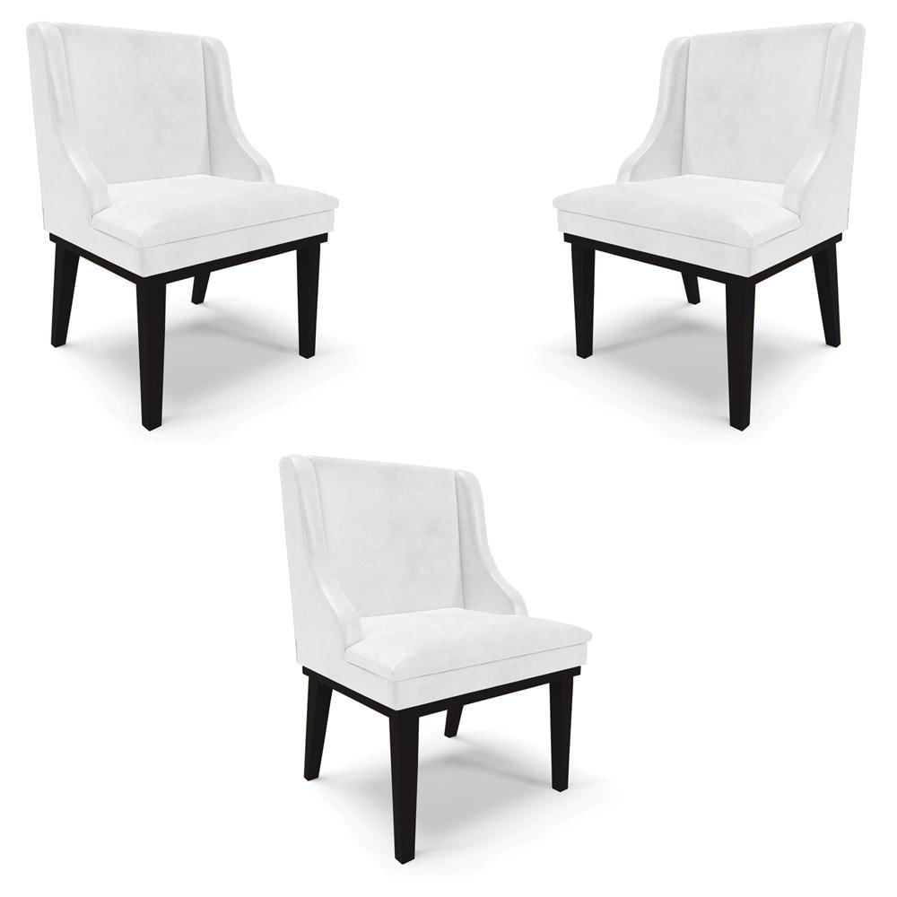 Kit 3 Cadeiras Decorativas Sala de Jantar Base Fixa de Madeira Firenze PU Branco Brilho/Preto G19 - Gran Belo
