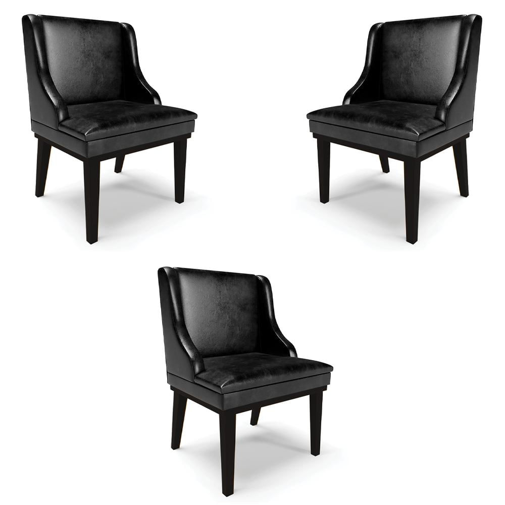 Kit 3 Cadeiras Decorativas Sala de Jantar Base Fixa de Madeira Firenze PU Preto Brilho G19 - Gran Belo
