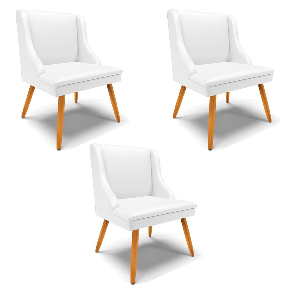 Kit 3 Cadeiras Decorativas Sala de Jantar Pés Palito de Madeira Firenze PU Branco Fosco/Natural G19 - Gran Belo