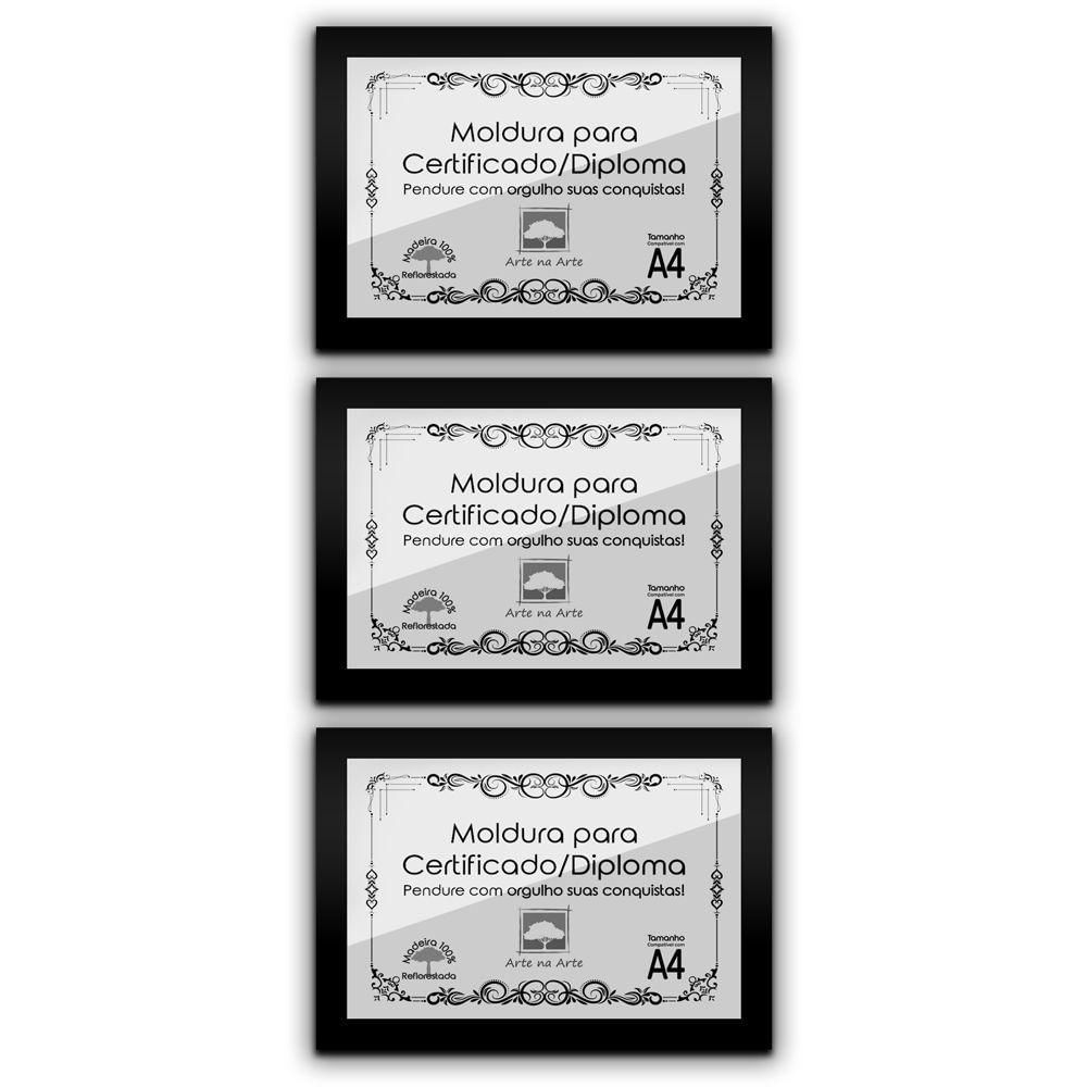 Kit 3 Certificados Diplomas A4 Com Tela De Acetato E Mdf Titulos Moldura Preta
