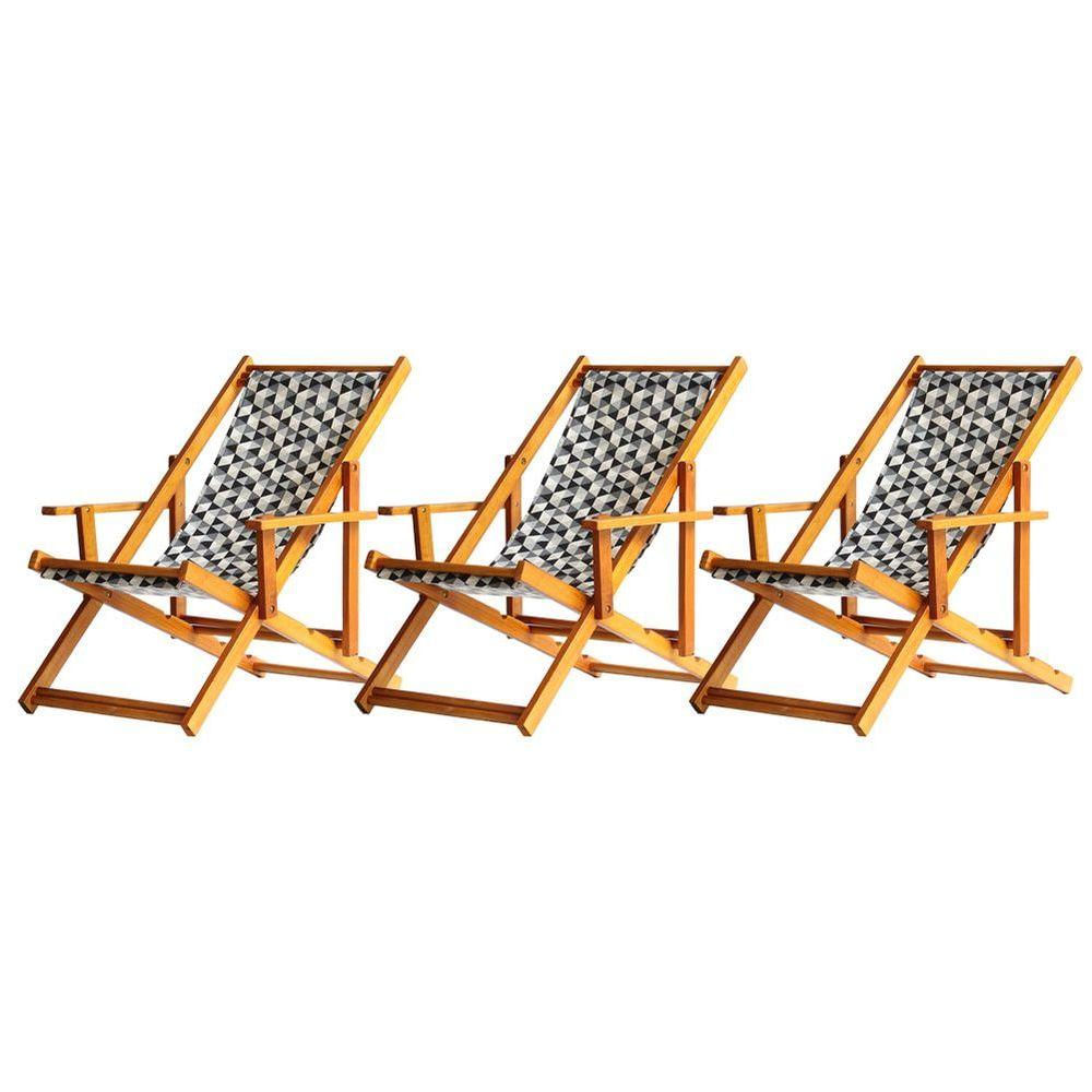 Kit 3 Espreguiçadeira Preguiçosa Dobrável Mel Cb-triang Preto