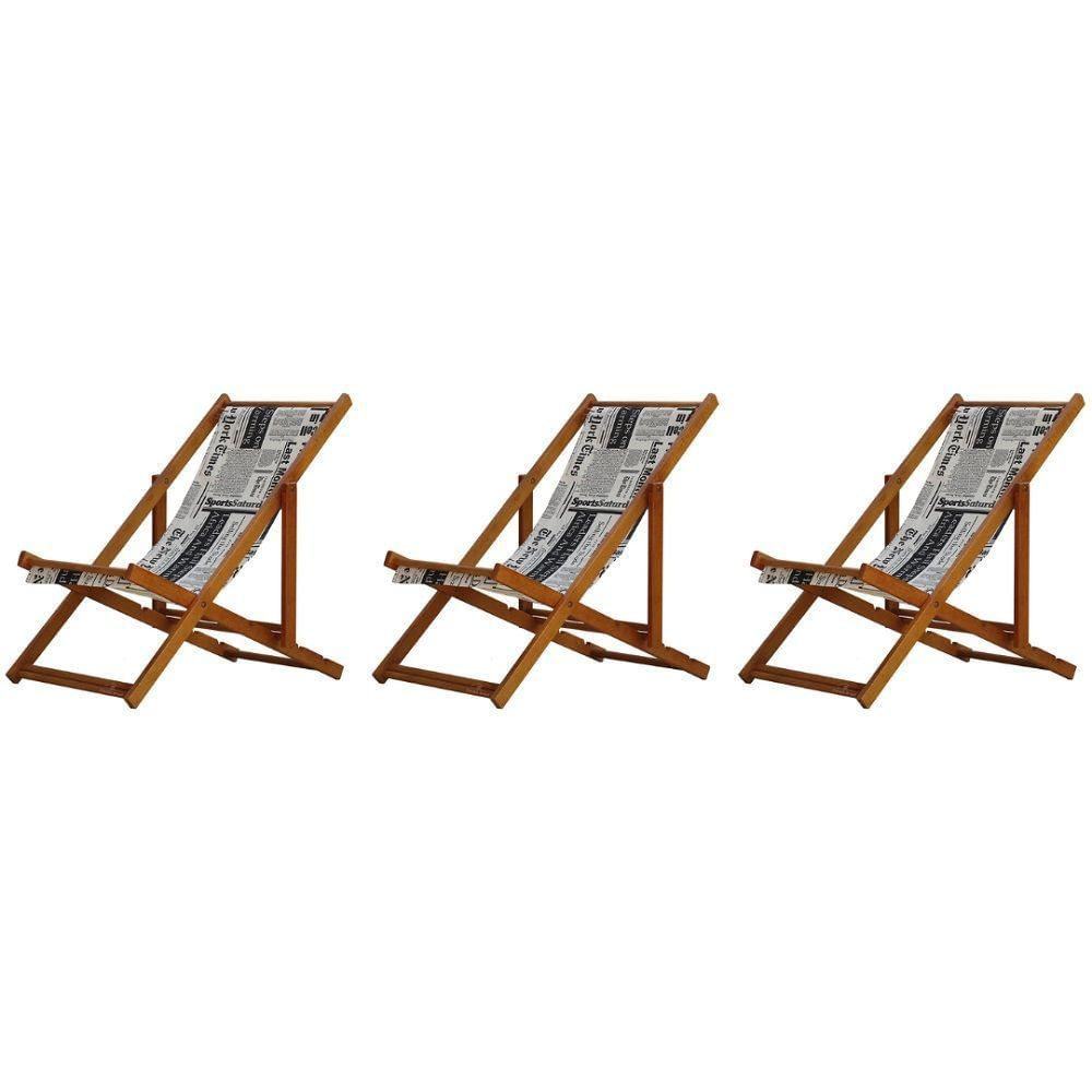 3 ESPREGUIÇADEIRAS EM MADEIRA ENVERNIZADA MEL S/B Sabe aquele final de tarde que você tanto espera para tirar um descanso merecido? Ou aquela viagem para a praia programada a meses com a família? Pois é, nossas cadeiras espreguiçadeira serve exatamente para esses momentos, com várias opções de cores, os tecidos além de charmosos são hidro-repelentes e se adequam a qualquer ambiente, facilmente removíveis para higienização.Estrutura 100% de madeira maciça e verniz especial, que garante sua qualidade e durabilidade, a espreguiçadeira é totalmente dobrável e reclinável (4 posições de ângulo), perfeita para seu lazer em todos os ambientes, seja ele externo ou interno, esse é o item que definitivamente não pode faltar na vida de quem de fato, quer aproveitar bons momentos! FICHA TÉCNICA DO PRODUTO:04 Níveis de Regulagem de Altura;Tecido Reforçado;Fabricada em Madeira Maciça Pinus;Peso aproximado: 7,5 Kg;Suporta aproximadamente 120 kg;Cor da Madeira: Mel;Acabamento: Envernizada Dimensões aproximadas do Produto:Altura 1: 69 cm;Altura 2: 82 cm;Altura 3: 91 cm;Altura 4: 100 cm;Profundidade: 105 cm. Dimensão aproximada total:Comprimento: 135 cm;Largura: 60 cm; Informações Adicionais:Garantia: 90 dias contra defeitos de fabricação. Obs. A cor pode variar da foto conforme a tonalidade da madeira e iluminação..