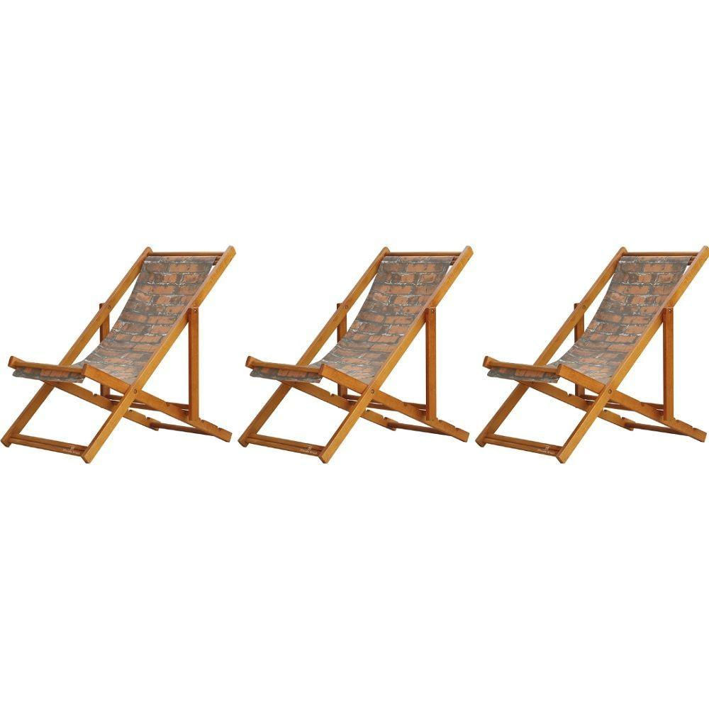 3 ESPREGUIÇADEIRAS EM MADEIRA ENVERNIZADA MEL S/B Sabe aquele final de tarde que você tanto espera para tirar um descanso merecido? Ou aquela viagem para a praia programada a meses com a família? Pois é, nossas cadeiras espreguiçadeira serve exatamente para esses momentos, com várias opções de cores, os tecidos além de charmosos são hidro-repelentes e se adequam a qualquer ambiente, facilmente removíveis para higienização.Estrutura 100% de madeira maciça e verniz especial, que garante sua qualidade e durabilidade, a espreguiçadeira é totalmente dobrável e reclinável (4 posições de ângulo), perfeita para seu lazer em todos os ambientes, seja ele externo ou interno, esse é o item que definitivamente não pode faltar na vida de quem de fato, quer aproveitar bons momentos! FICHA TÉCNICA DO PRODUTO:04 Níveis de Regulagem de Altura;Tecido Reforçado;Fabricada em Madeira Maciça Pinus;Peso aproximado: 7,5 Kg;Suporta aproximadamente 120 kg;Cor da Madeira: Mel;Acabamento: Envernizada Dimensões aproximadas do Produto:Altura 1: 69 cm;Altura 2: 82 cm;Altura 3: 91 cm;Altura 4: 100 cm;Profundidade: 105 cm. Dimensão aproximada total:Comprimento: 135 cm;Largura: 60 cm; Informações Adicionais:Garantia: 90 dias contra defeitos de fabricação. Obs. A cor pode variar da foto conforme a tonalidade da madeira e iluminação..