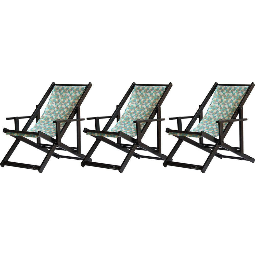 Kit 3 Espreguiçadeiras Dobrável Black Cb-triang Azul