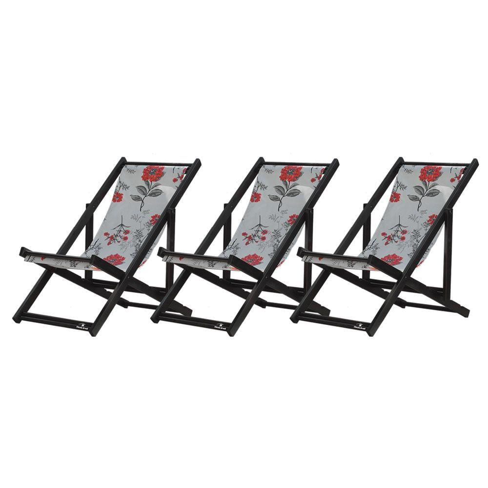 Kit 3 Espreguiçadeiras Dobrável Black Sb-cinza Floral