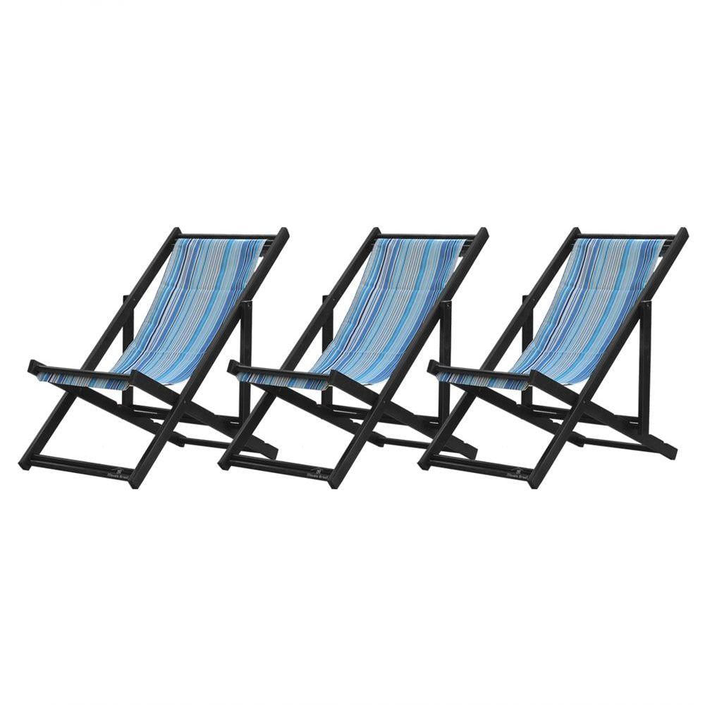 Kit 3 Espreguiçadeiras Dobrável Black Sb-listras Azuis