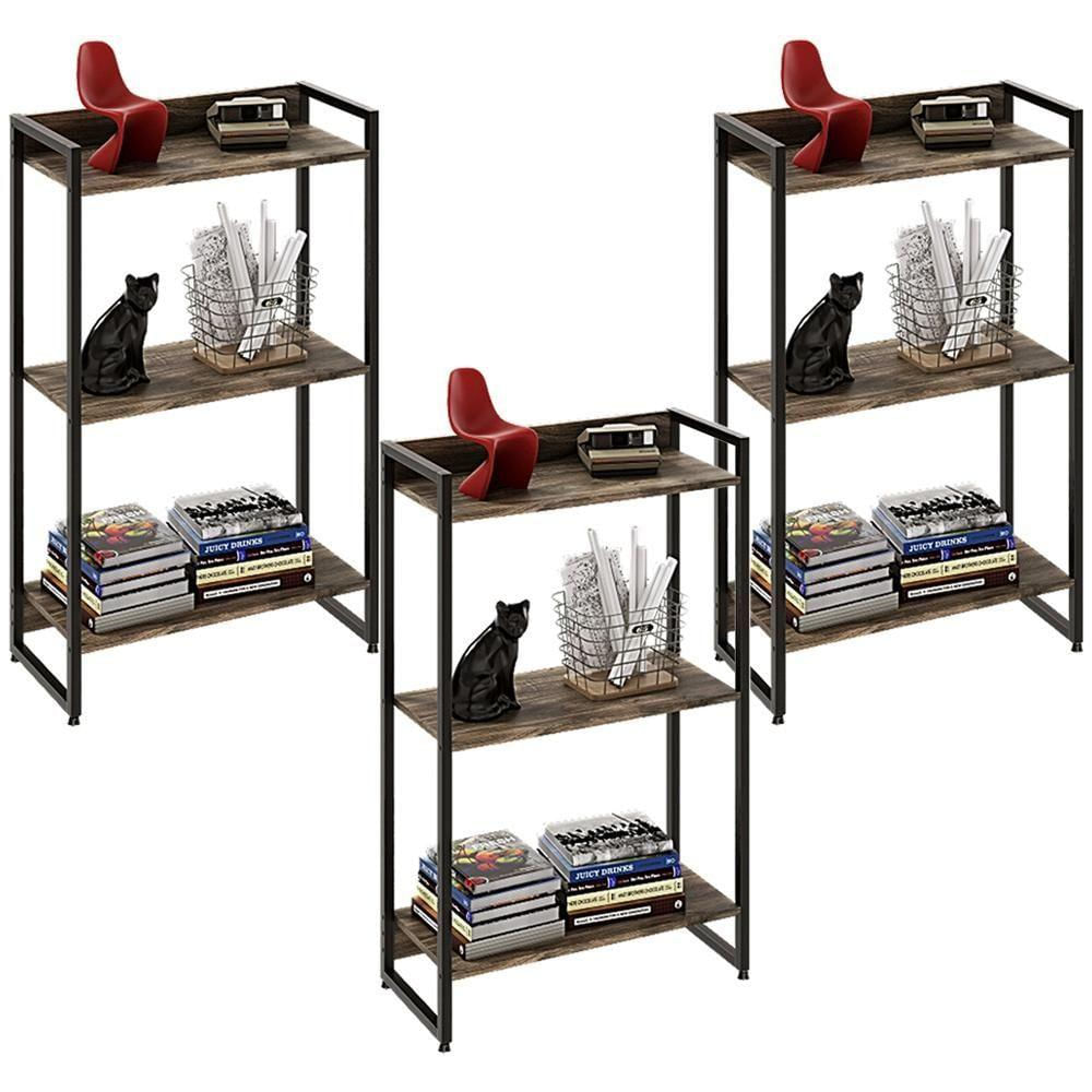 Kit 3 Estantes 3 Prateleiras 104X60Cm Carvalho Dark