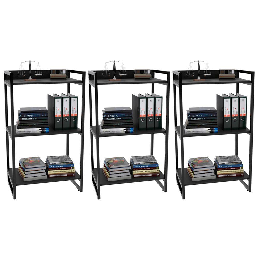 Kit 3 Estantes 3 Prateleiras Escritório Estilo Industrial Form C01 104x60cm Preto Onix - Lyam Decor