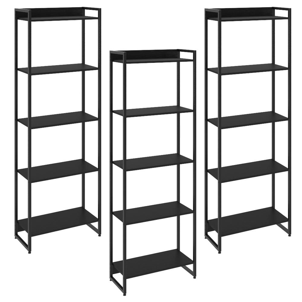 Kit 3 Estantes Multiuso Escritório Industrial 5 Prateleiras Areta 186x60cm C01 Onix - Lyam Decor