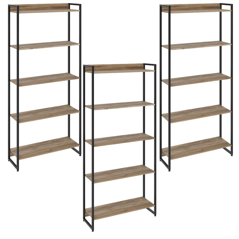Com o Kit 3 Estantes Multiuso Escritório Industrial 5 Prateleiras Areta 186x80cm C01 Carvalho - Lyam Decor, o conceito industrial ficará evidente no seu ambiente, tornando o mesmo muito mais moderno, sofisticado e organizado, garantindo isso com 05 prateleiras que deixam tudo prático e funcional. Uma característica muito forte dos móveis industriais é a união do tubular de estrutura exposta com a madeira, que dão todo o charme para agregar no estilo que está entre os mais buscados no ramo de arquitetura e decoração. Adquira já a sua![ Dimensões do produto (L x A x P) 80 x 186 x 30 cm Medidas Internas: Altura da prateleira: 39,7 cm Largura da prateleira: 76 cm Características: 05 prateleiras produzidas em MDP, com acabamento em BP acetinado. Pés em tubo de aço com sapatas niveladoras e acabamento em pintura texturizada epóxi, responsável por criar alta resistência á umidade e produtos químicos, facilitando também na limpeza e manutenção. Fita de borda em PVC. Solda com acabamento suavizado. Produto na cor Carvalho. Suporta até 8 kg por prateleira. Produto entregue desmontado, acompanha manual de montagem. Para a limpeza, utilize flanela seca. Evite contato com produtos químicos (solventes, thinner, acetona, etc) e não utilize nenhum tipo de esponja de aço.Observações importantes: A montagem será de responsabilidade do comprador; Responsabilizamo-nos pela entrega em todo território nacional, até onde as rodovias alcançam, entregas fluviais ou aéreas devem ser cotadas a parte; As imagens são ilustrativas, não acompanham objetos de decoração e eletrônicos; Não nos responsabilizamos, no ato da entrega, por subir escadas/elevadores ou transporte por guincho em apartamentos. Eventuais despesas são de responsabilidade do comprador; Confira as dimensões do produto e certifique-se de que passará normalmente por supostos elevadores, portas, escadas e/ou corredores de sua residência