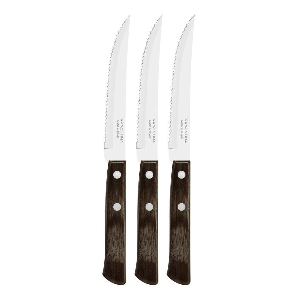 Kit 3 Facas De Churrasco Tramontina Polywood Inox Cabo Castanho