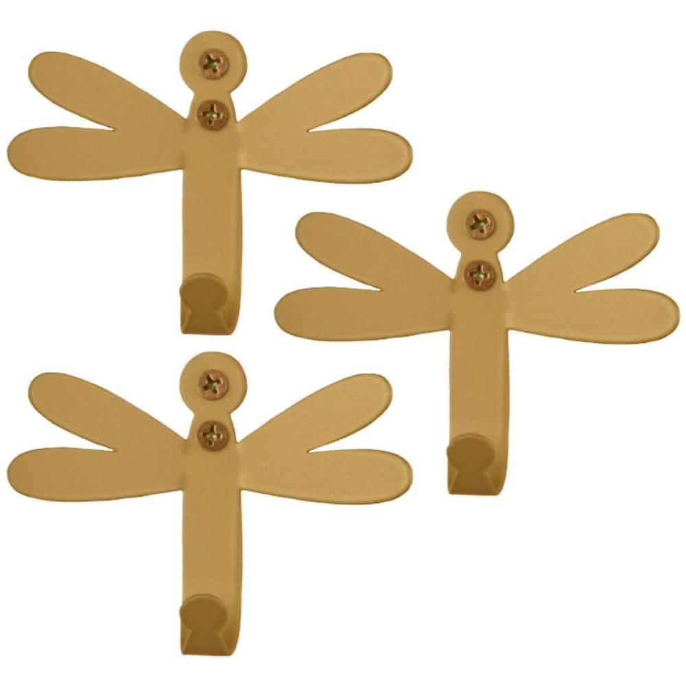 Kit 3 Ganchos Penduradores 8cm Libélula Dourada Carbono Luft Masutti Decorativo de Parede Enfeite