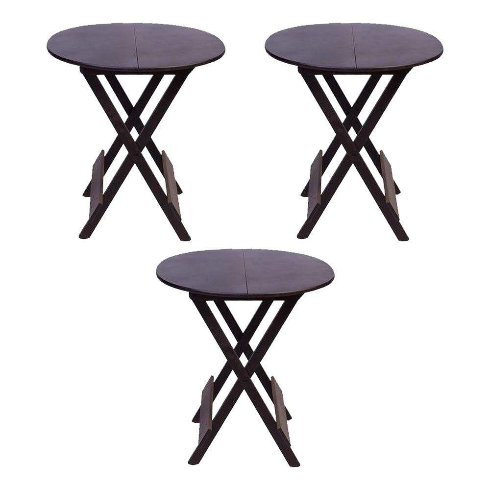 Kit 3 Mesas Redondas Dobráveis Em Madeira Maciça 70X70 Marrom Ideal Para Bares E Restaurantes