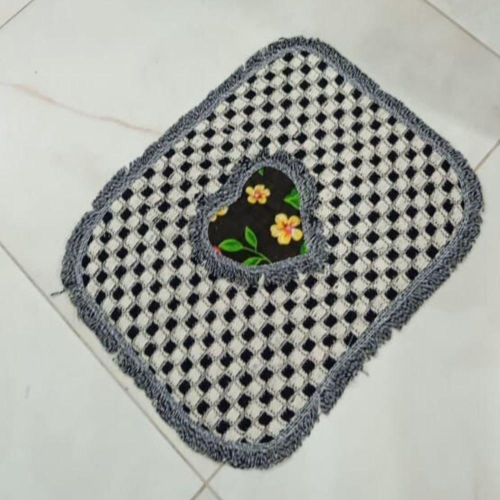 Kit 3 Peças De Tapete Banheiro Algodão 100% Tamanho 50x40cm Para Piso Chão Estampado E Liso Preto Com Estampa