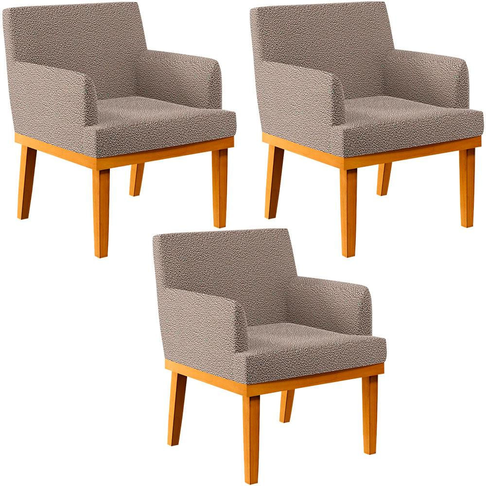Kit 3 Poltronas Decorativas Sala De Estar E Recepção Base Mel Beatriz W01 Bouclê Bege - Lyam Decor