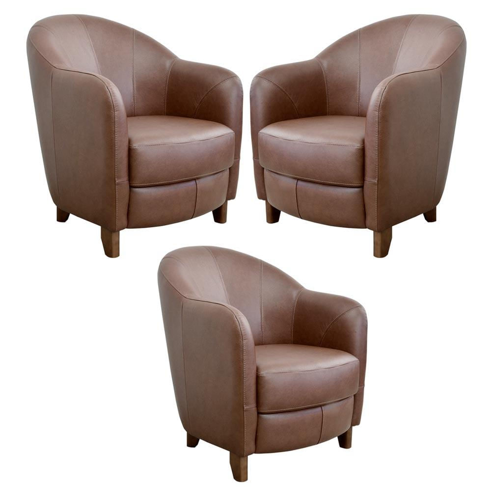 Kit 3 Poltronas Decorativas Sala de Estar Pés Madeira Kairós Couro Caramelo - Gran Belo