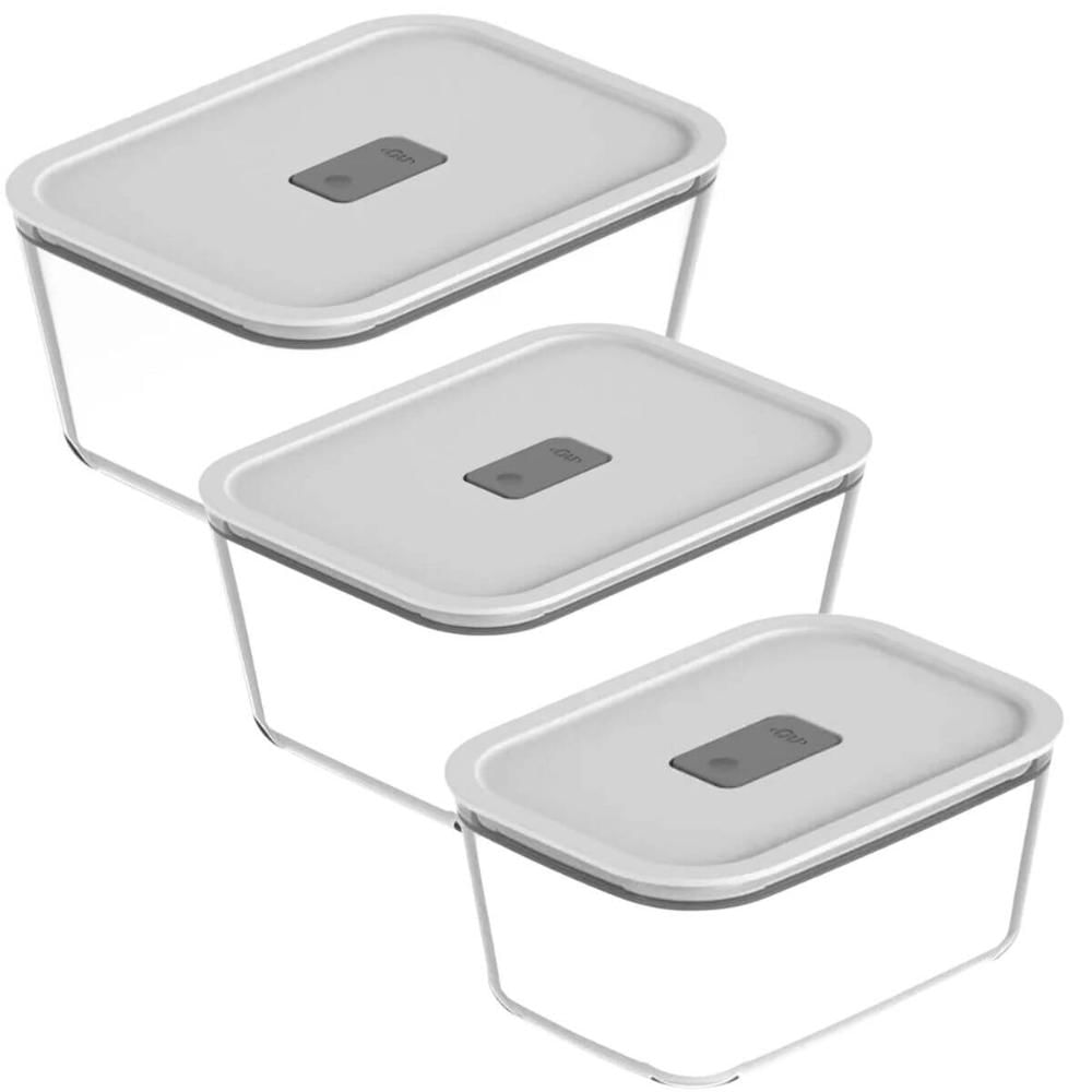 Kit 3 Potes Herméticos de Vidro Marmitas P M G com Tampa Ou Fresh Lock Branco
