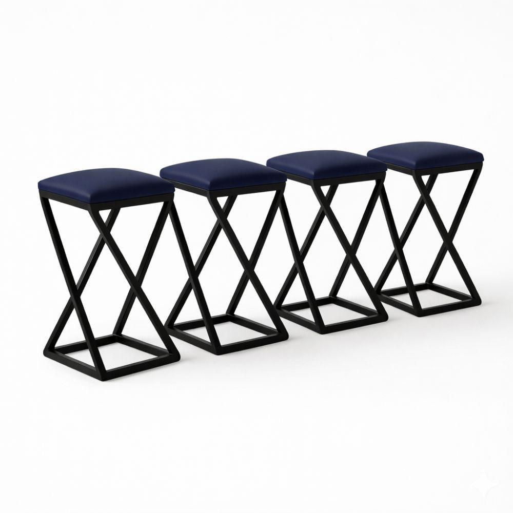 Kit 4 Banqueta Alta 80 Cm Cozinha Bar Balcão Bistrô Corino Azul Marinho