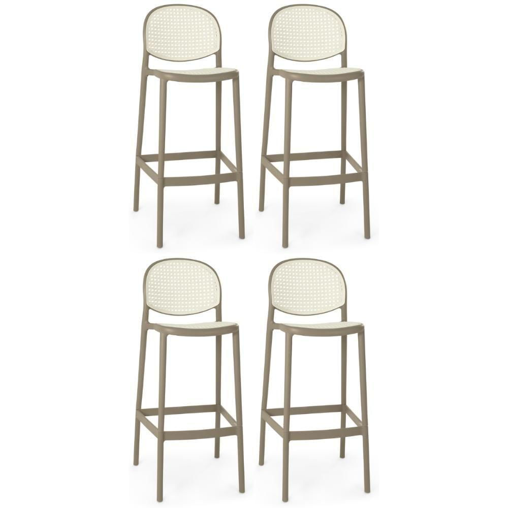 Kit 4 Banqueta Alta Com Encosto Roma Em Polipropileno - Branco/cinza Escuro