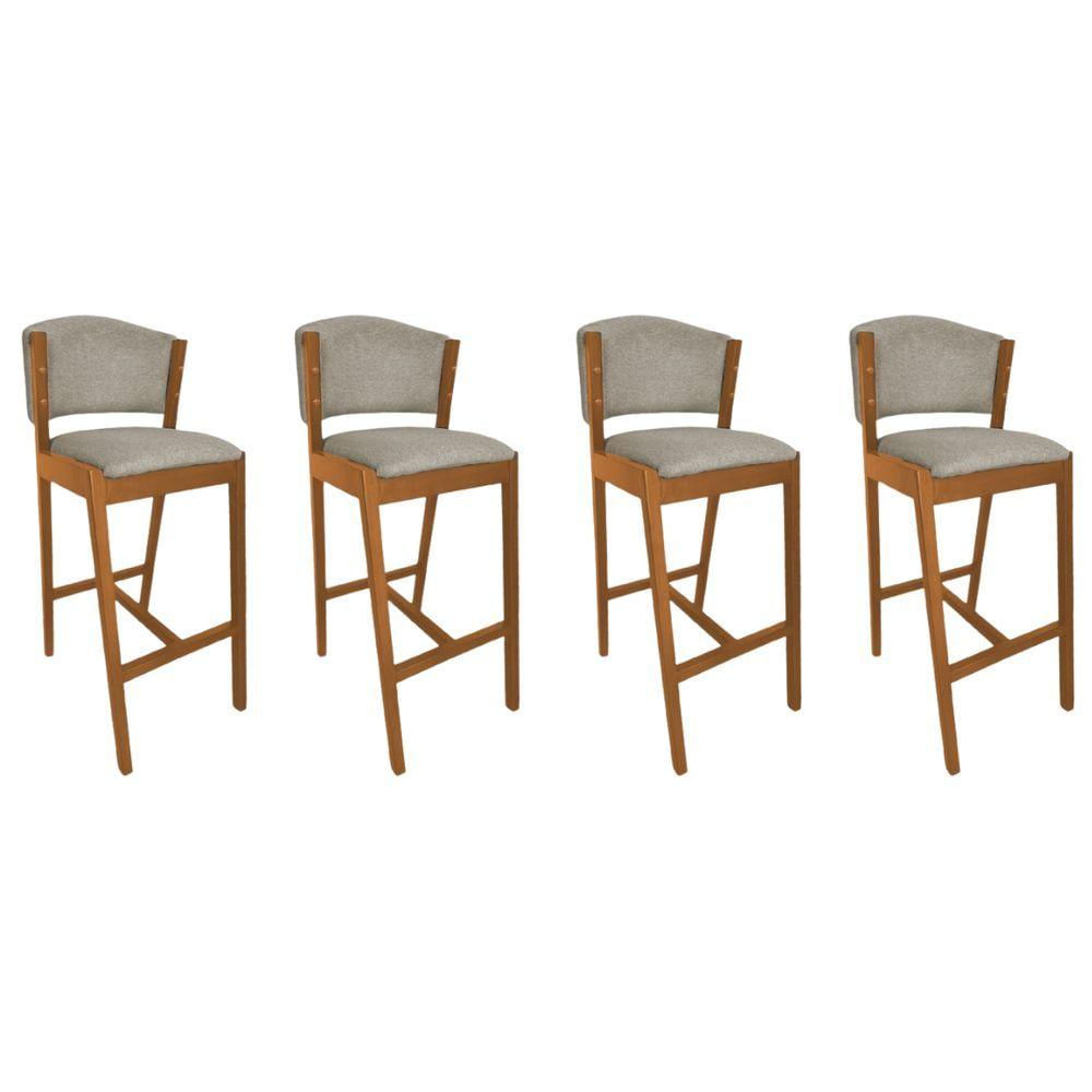 Kit 4 Banquetas Altas De Madeira Maciça Ana Em Linho Premium Bege Linho Cerejeira