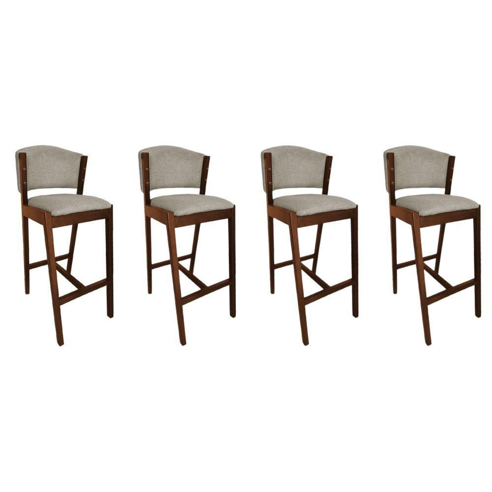 Kit 4 Banquetas Altas De Madeira Maciça Ana Em Linho Premium Bege Linho Mel